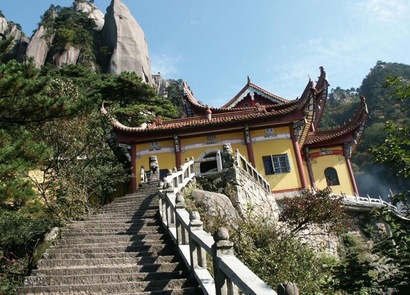 Named as the most famous mountain in Southeast China, Mt. Jiuhua has beautiful valleys, steams and waterfalls. The place itself is shaped like a lotus flower and is noted to have over 70 peaks, with half of them exceeding the height of 1000 metres, the highest being 1,342 metres.