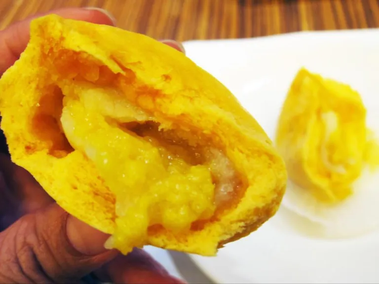 This sweet bun contains liquidy custard that sometimes also contains salted egg yolks. Each bite is sweet and savoury and contains mouthfuls of oozing custard. Be warned: these custard buns look small but they pack plenty of calories (for obvious reasons), so do watch how many of them you eat!
