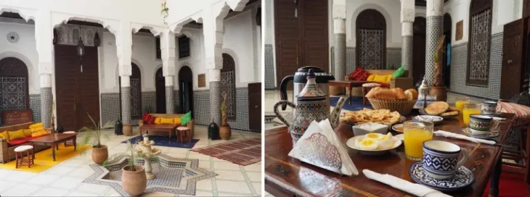 Riad: A traditional Moroccan house or palace with an interior garden or courtyard.