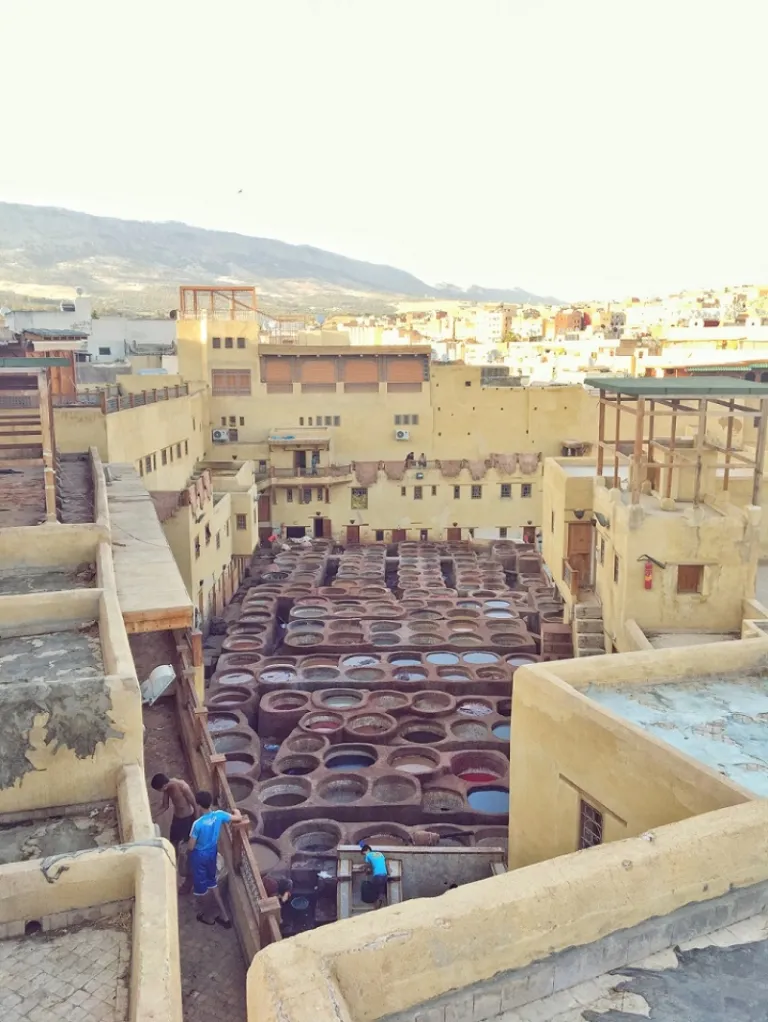Along the way, people will offer you mint leaves to mask the smell but honestly, it wasn’t that bad and still tolerable, but know that you’ll always have this option if you’re extra sensitive! To get a view of the tanneries, many shops will offer you to go up to their roof terrace for a small fee and take a look at the leather goods they are selling afterwards.