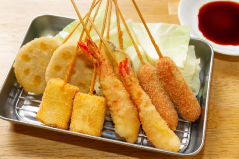 Kushikatsu is a beloved Japanese dish that consists of skewered and deep-fried meat, seafood, and vegetables. These are coated in a crispy batter and served with a tangy dipping sauce. Often found in Osaka, this dish is typically enjoyed as a casual meal or snack, perfect for pairing with a cold beer. The variety of ingredients makes it a delightful experience for anyone who enjoys fried foods with a twist!