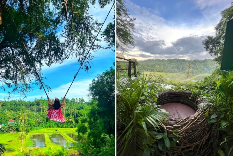 There’s a reason why Villa Jovita in Agoncillo is dubbed the “Bali of Batangas.” This home-turned-resort has its very own Bali Corner, where you can probably spend half the day snapping IG-worthy photos. It features lookalikes of famous attractions from the Bali Swing theme park: a giant swing facing the rice paddies, hanging nest-like pods, and a human-sized flat nest.