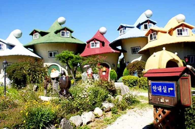 From the photos of this Happy World Jongihak Pension, I presume this place is pretty big and it will seem like you have just entered a storybook. You can choose to stay in a mushroom, a tree house or even a paper crane house.