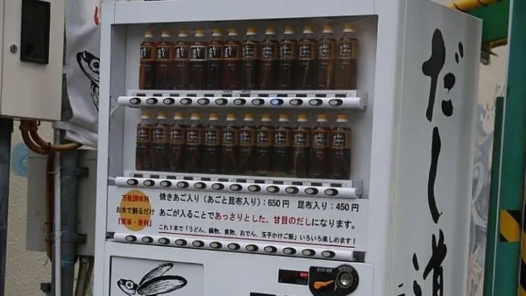 Have you ever tasted the broth of a flying fish? Japanese vending machines in Hiroshima sell Dashi Doraku: a bottled broth made from kombu seaweed, soy sauce, and flying fish. Apparently, Dashi Doraku is a popular all-around seasoning that can be used in almost any dish.