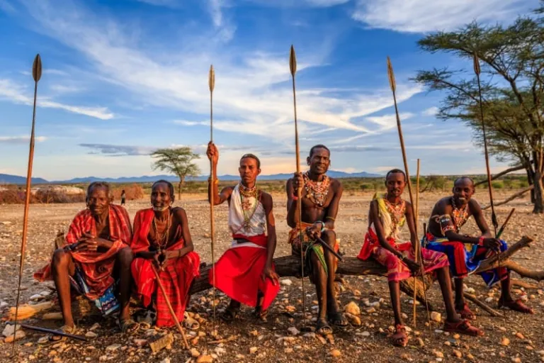 The Maasai Mara people are a Nilotic ethnic group found in Kenya and Tanzania. They have a distinct culture centred around cattle herding and a semi-nomadic lifestyle. Furthermore, they have their own language, wear colourful traditional clothing, and are known for their warrior culture.