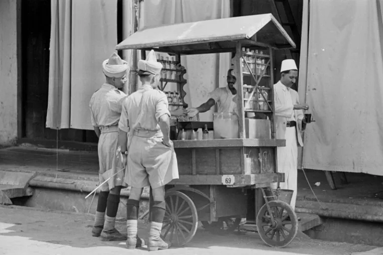 A vendor selling refreshments to Indian soldiers