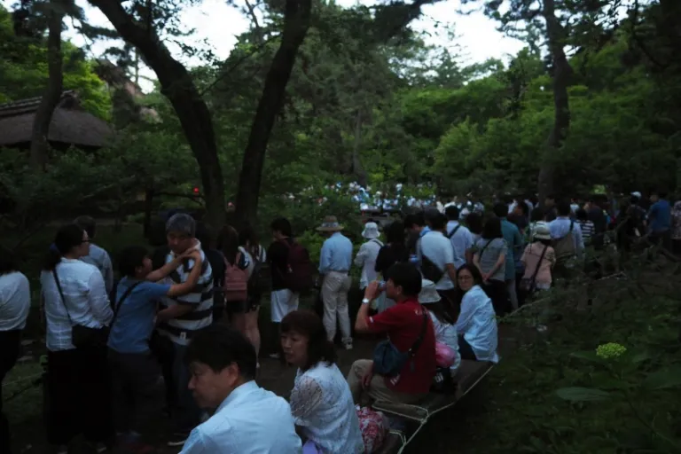 This iconic park in neighbouring city Yokohama is pretty enough on a regular day, but seeing wild fireflies light it up and zip around in the dark makes it all the more breathtaking. Entering costs a slightly above average fee of 700 yen. But if you arrive in the late afternoon, you’ll have enough time to view the interesting collection of architectural artefacts from different parts of Japan before heading over to the firefly viewing area. Crowds here aren’t devastatingly big, though a walk further down the path can get you a nice viewing spot on the other side of the streams, which is less crowded.