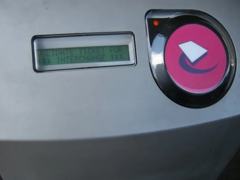Pink card readers are installed at interchange stations outside Zone 1. Remember to tap!