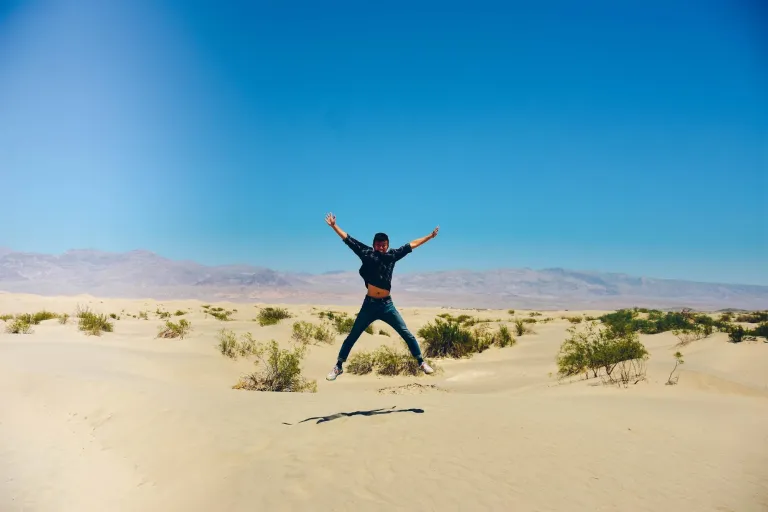 Coming down from Yosemite, the first attraction to pull over for is the Mesquite Flat Sand Dunes. A vast desert with practically no end in sight, one can walk for miles and miles here… Winds are strong here so it’s advisable to wear sunglasses to prevent sand from getting into your eyes. Then, grab a piece of cardboard and slide down the steepest sand dune you can find!