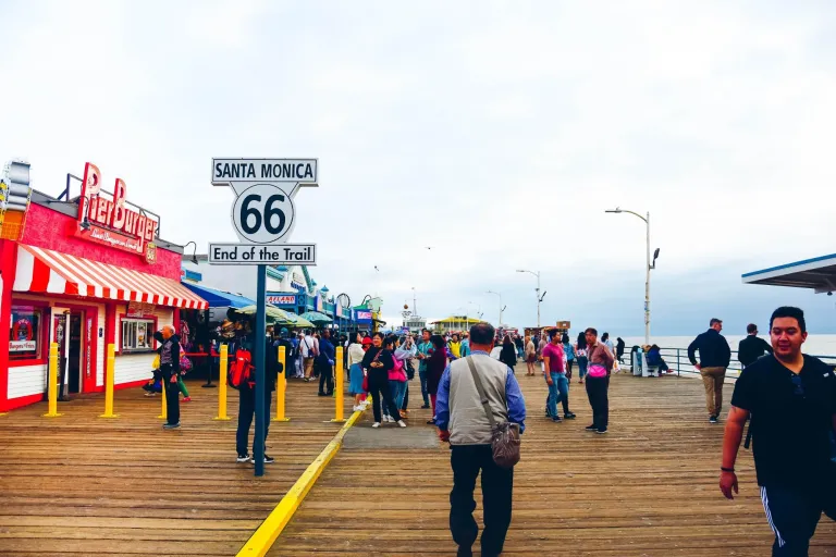 The significance of Santa Monica Pier is that it is the end of the historic Route 66 that spans from Chicago in the east, through Missouri, Kansas, Oklahoma, Texas, New Mexico and Arizona. Besides being the final destination of this iconic route, the Santa Monica Pier is also a theme park that features roller-coasters, ferris wheels, carnival game booths and food!