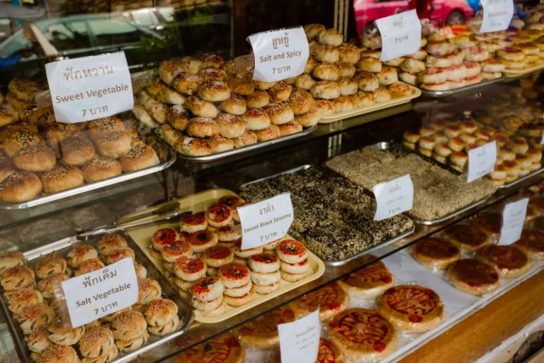 Walking down the streets of Bangkok’s Chinatown, you’re bound to run into a quaint bakery or two. These shops sell traditional baked goods featuring unique local flavours that’ll make for a light snack for your travels. A favourite of both locals and tourists alike is the Yaowarat toasted bread, a buttered toast with condensed milk or custard filling – crispy on the outside and soft on the inside!