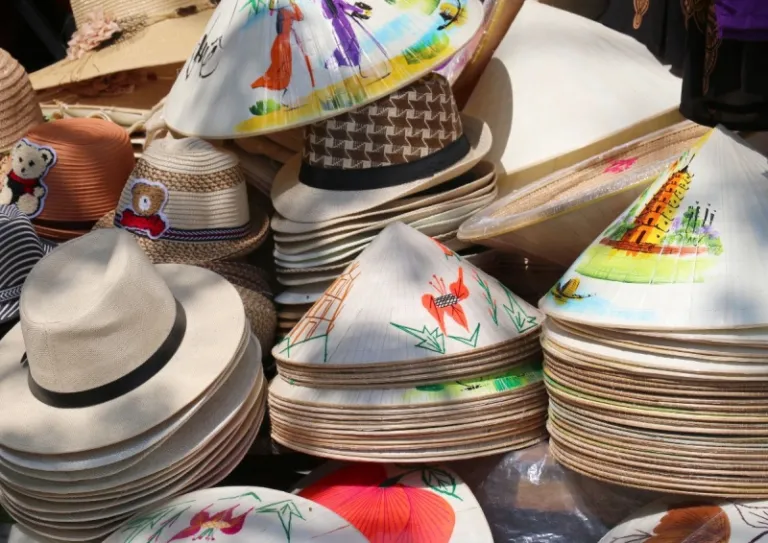 With so many vendors at the market, you’ll find hats in different sizes, colours, and styles. In fact, you might find some nón lá with embroidery, paintings, or even modern embellishments. We highly recommend shopping for these hats as you’ll get to experience Vietnamese culture firsthand and see how these hats are made and sold.
