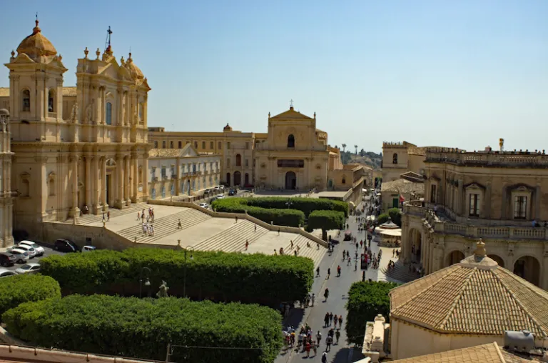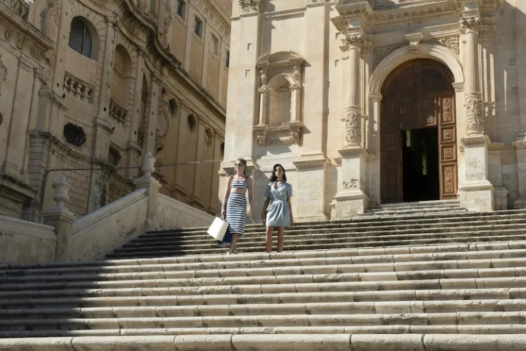 Another one of The White Lotus filming locations from episode three is the relatively underrated city of Noto, which Daphne and Harper visit on their last-minute girls’ trip. They spend an afternoon shopping around Piazza del Municipio: a baroque town square surrounded by centuries-old palazzos that now house boutiques and cafes, as well as the Noto Cathedral. The latter features a large flight of stairs, wherein these women receive unwanted advances and creepy stares from the local men. (So much for a postcard-worthy travel experience, I guess).