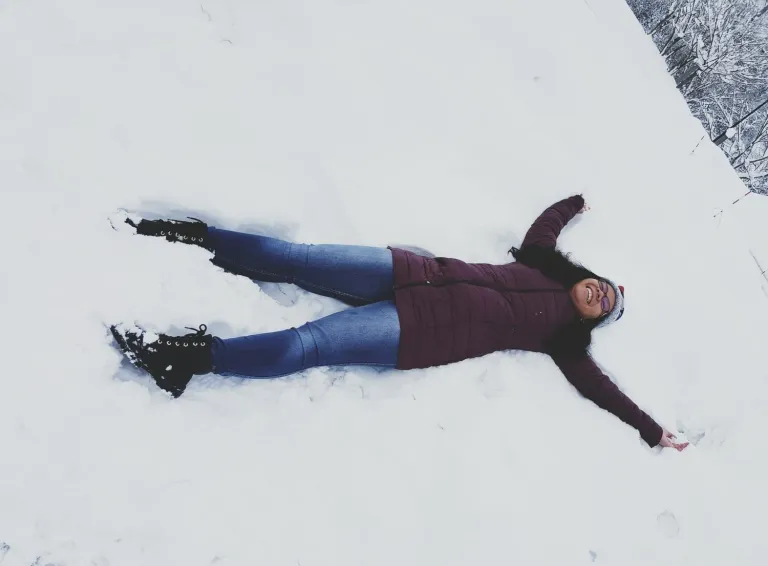I just could not resist lying on a bed of snow and ask my sister to take a picture of me looking silly. I was wearing jeans without warmers and boy did the ice got through the denim. It took me a while to recover from the burn on my thighs and gloveless hands, but it was worth it! I loved it!