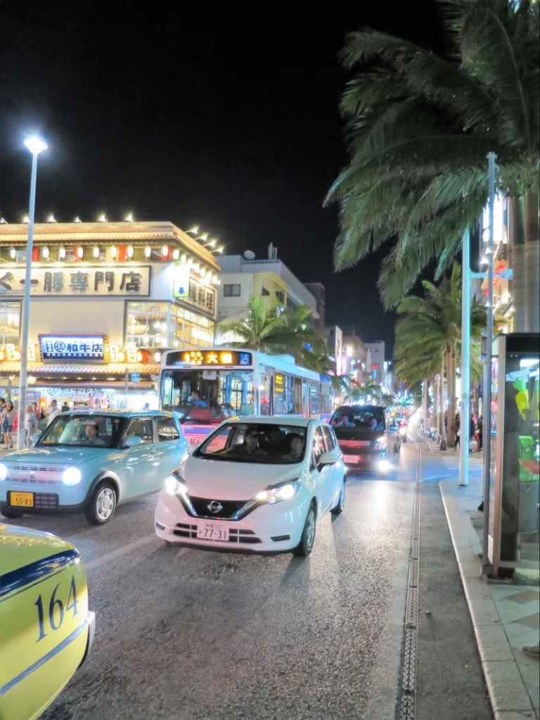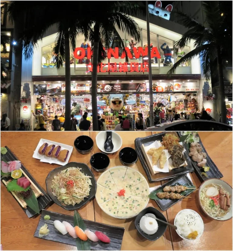 Following that, we cycled to Kokusai Street, which was a stretch of brightly lit road like a beacon in the dusk. It was hard not to be bowled over by the two kilometres worth of road paved with buzzing shops, restaurants, and bars thronged with tourists and locals alike.