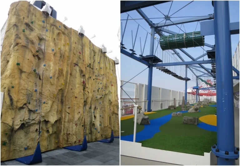 More unique are high element features such as ropes courses and a rock wall, which will offer you an even more brilliant view of the ocean once you’re up there. There’s also a basketball court, ping pong tables, a mini golf course, and a giant chess set so there’s really something for everyone.