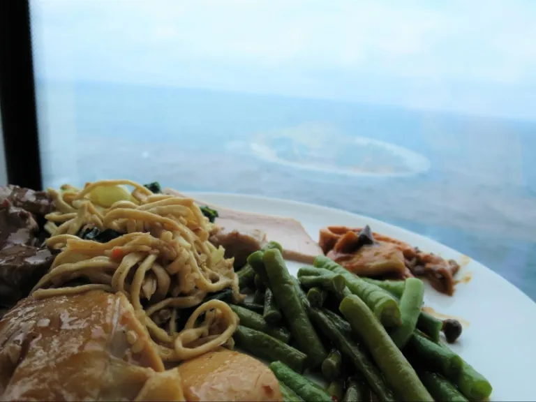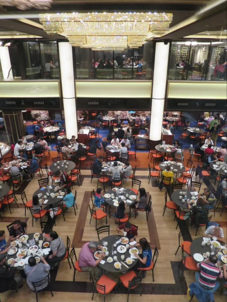 There are three dining areas in World Dream that are included in the package and while they tend to get pretty packed at mealtimes, I never went hungry! Dream Dining Lower is set in a splendid ballroom with large chandeliers and you’ll find a fusion of Asian and Western cuisine laid out in a buffet style.