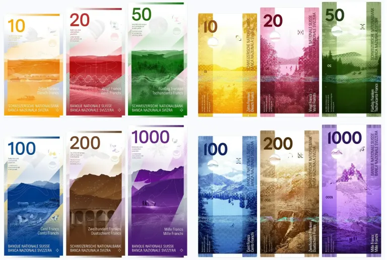 Swiss francs, issued by the Swiss National Bank, are often considered among the most beautifully designed in the world.