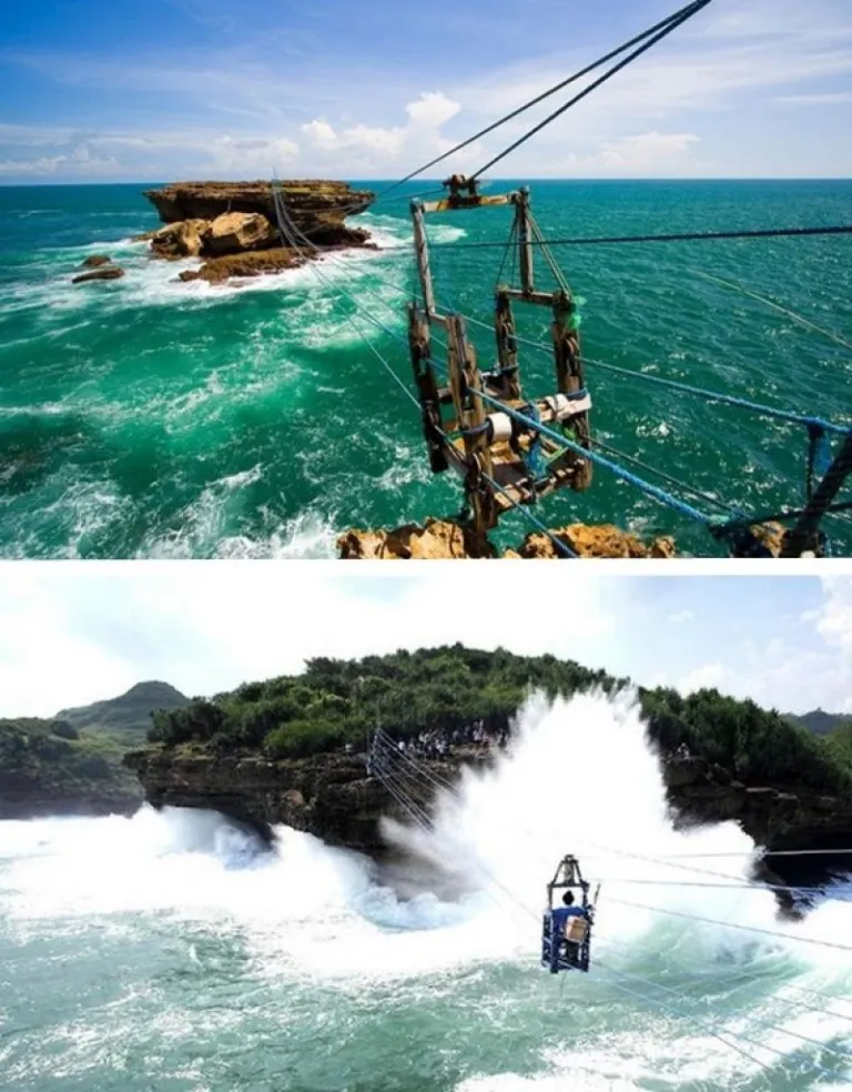 Be sure to look out for a painted sign that points you in the direction of the gondola once you arrive at Timang Beach. The first sight of the gondola’s crazy structure might intimidate most as it sits precariously between the mainland and a rocky outcrop just 20 metres offshore. Between the two, the waves thrash around below excitedly, and the first question you’re bound to ask yourself is ‘How safe is this?’. Luckily, the team of men working the pulley system are organised and communicate well via their walkie-talkies, so you can be assured they know their stuff. The price is another issue that may throw some off. The staff asks for RP200,000 (about SGD20) at the start, but are open to bargaining, so you’re more than welcome to test your skills!